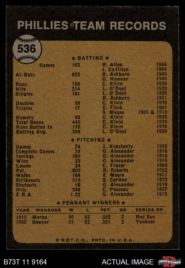 1973 Topps #536 Phillies Team 5 - EX