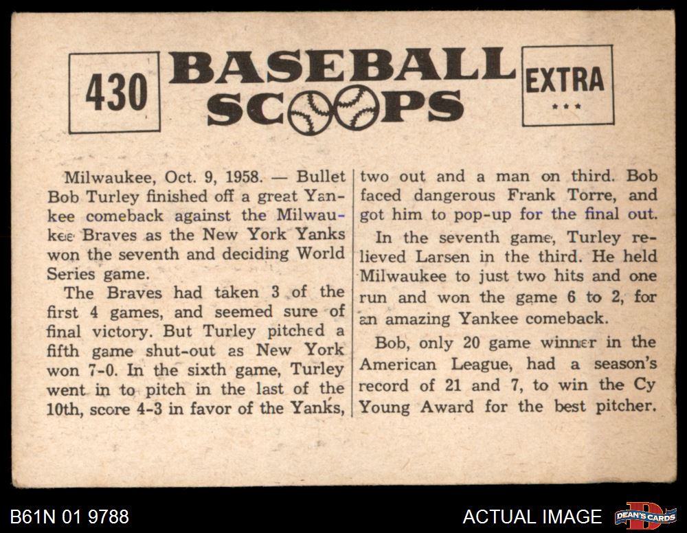 1961 Nu-Card Scoops #430 Hurls Yanks to Championship