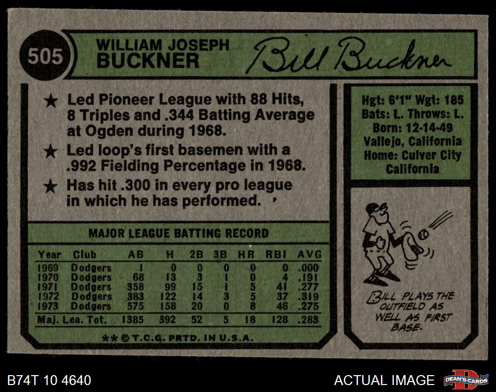 1974 Topps #505 Bill Buckner 3 - VG
