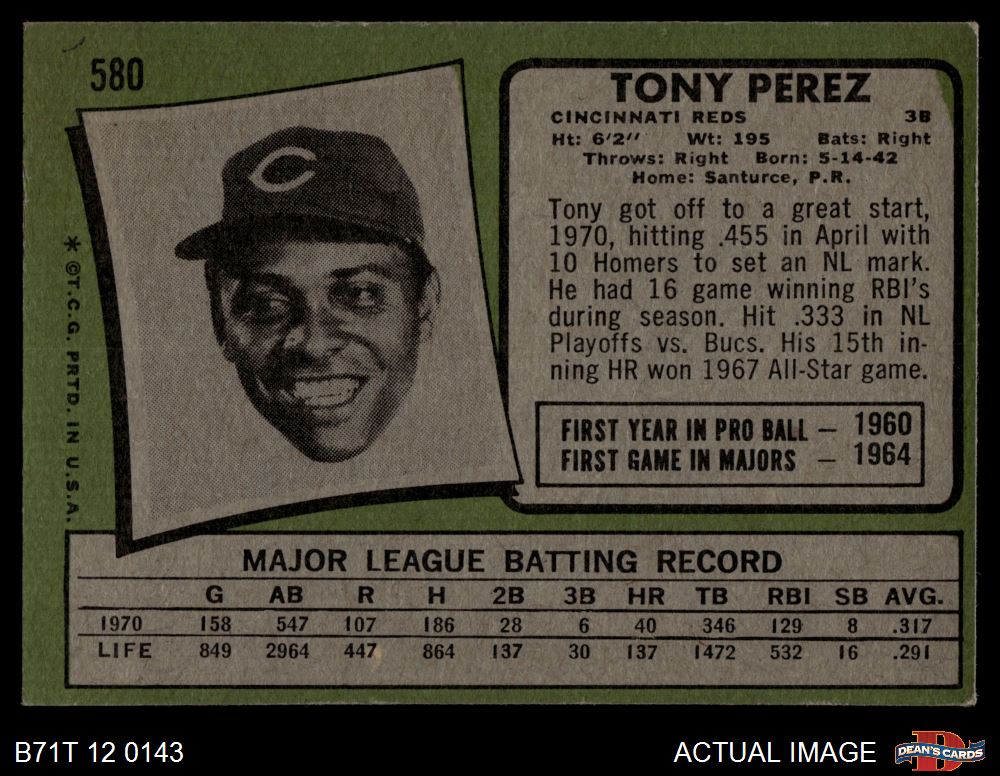 1971 Topps #580 Tony Perez 4 - VG/EX
