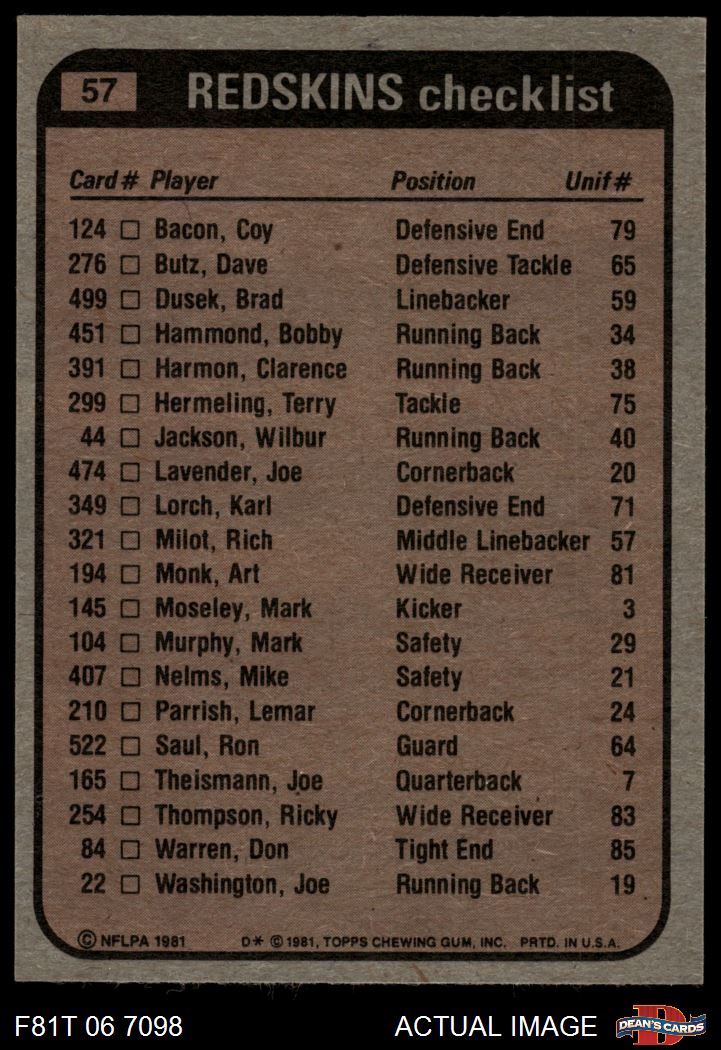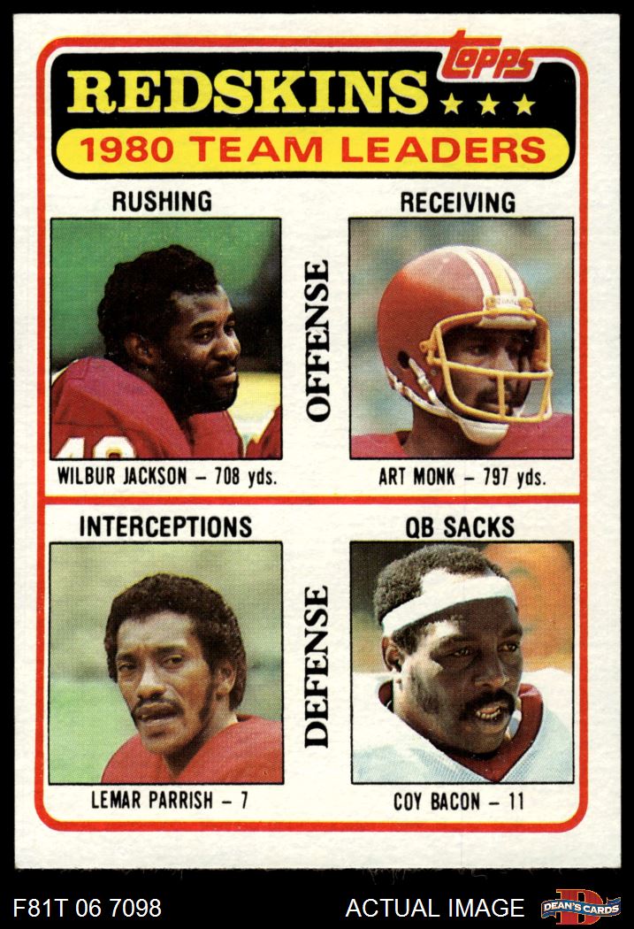 1981 Topps #57 - Wilbur Jackson / Art Monk / Lemar Parrish / Coy Bacon Washington Redskins Leaders & Checklist 7 - NM