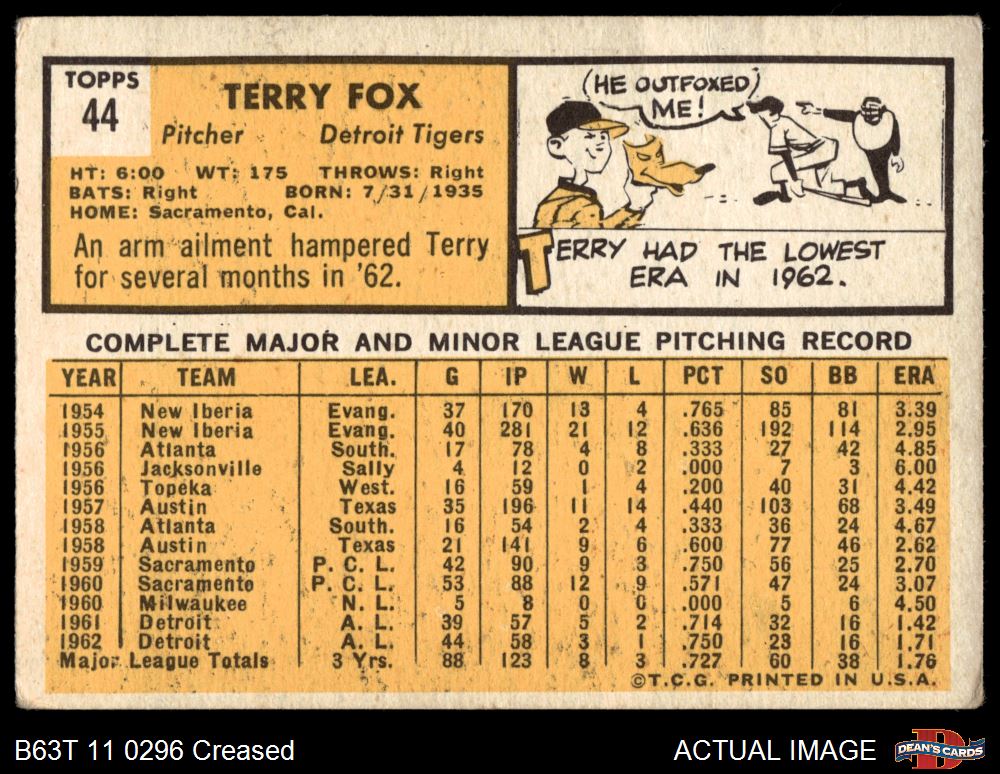 1963 Topps #44 Terry Fox 2 - GOOD