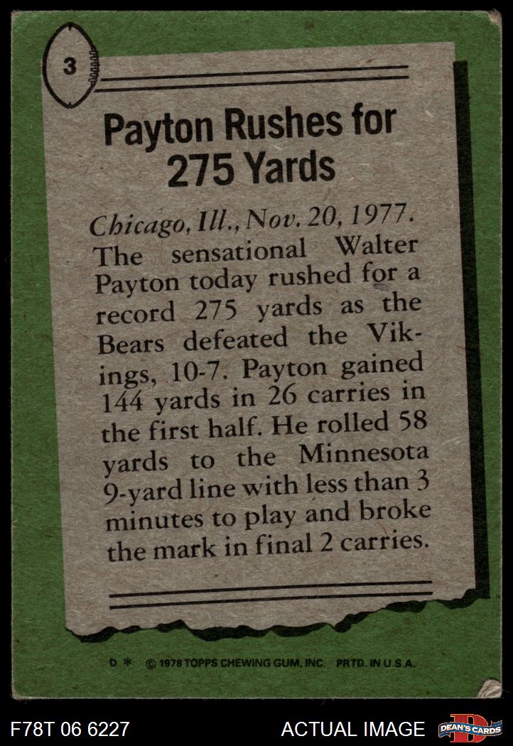 1978 Topps #3 - Walter Payton Payton Rushes for 275 Yards 1.5 - FAIR