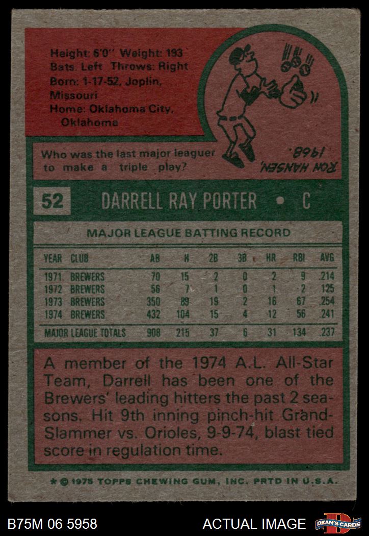 1975 Topps Mini #52 Darrell Porter 4 - VG/EX