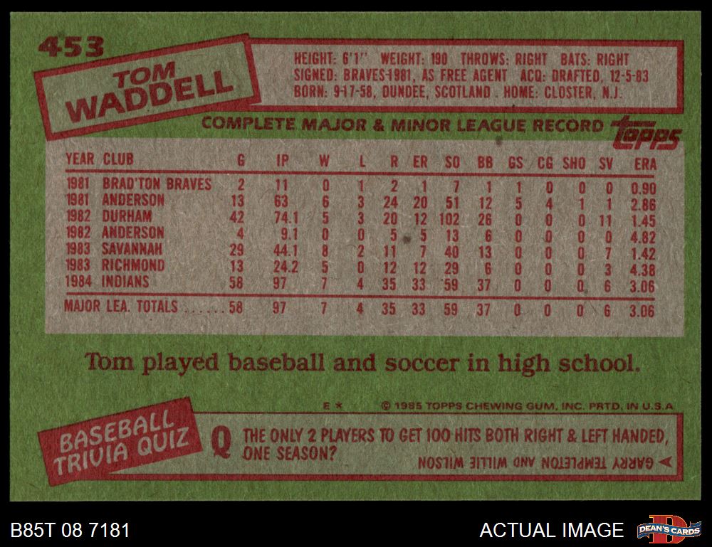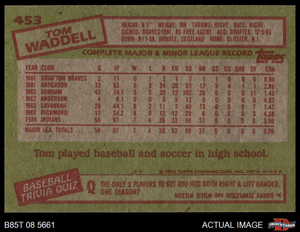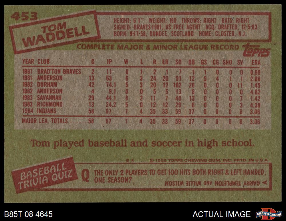 1985 Topps #453 Tom Waddell