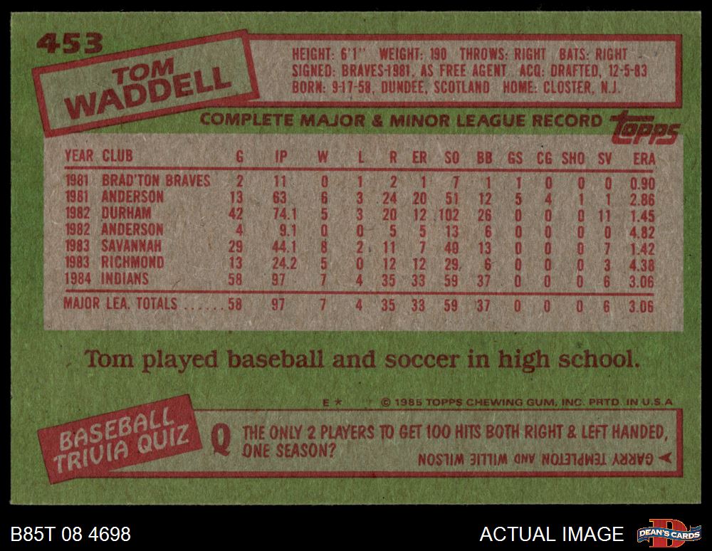 1985 Topps Baseball Cards (11,243 available)1985 Topps Indians (451 available)