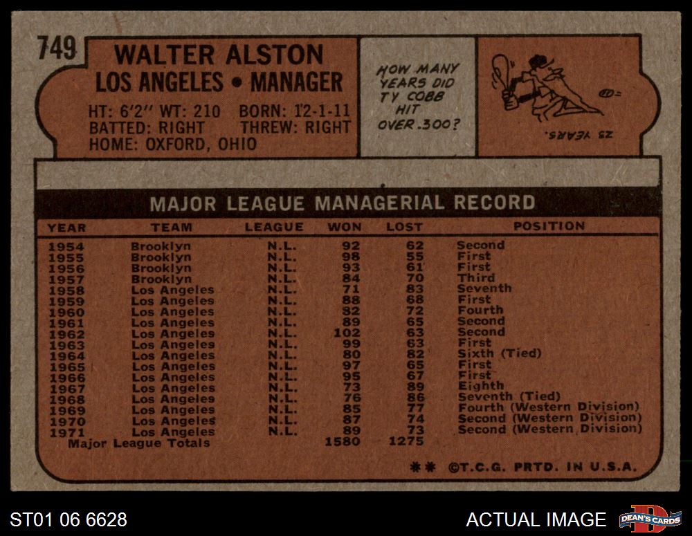 1972 Topps #749 Walt Alston 5 - EX