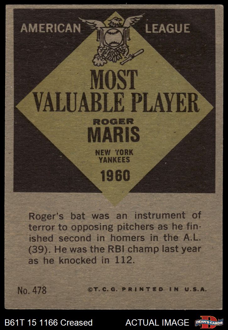 1961 Topps #478 - Roger Maris Most Valuable Player 3 - VG