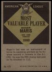 1961 Topps #478  -  Roger Maris Most Valuable Player Front Thumbnail