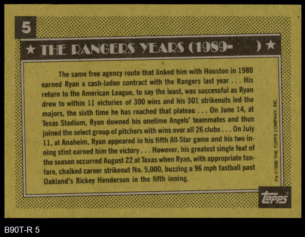 1990 Topps #5 - Nolan Ryan Nolan Ryan Salute 8 - NM/MT