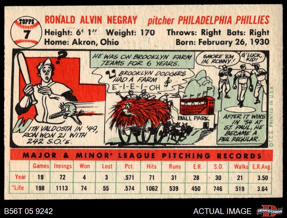 1956 Topps #7 Ron Negray 4 - VG/EX
