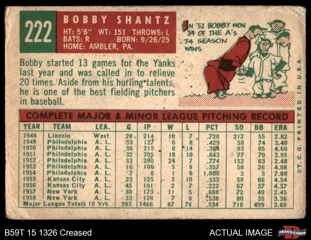 1959 Topps #222 Bobby Shantz 1.5 - FAIR