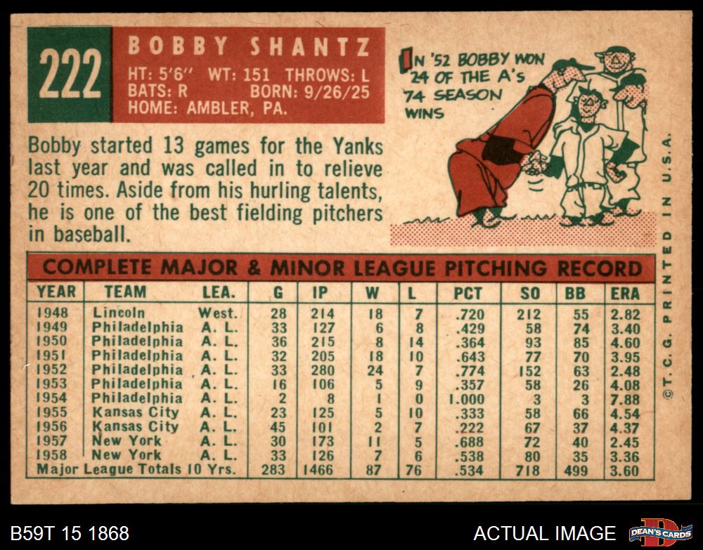 1959 Topps #222 Bobby Shantz 7.5 - NM+