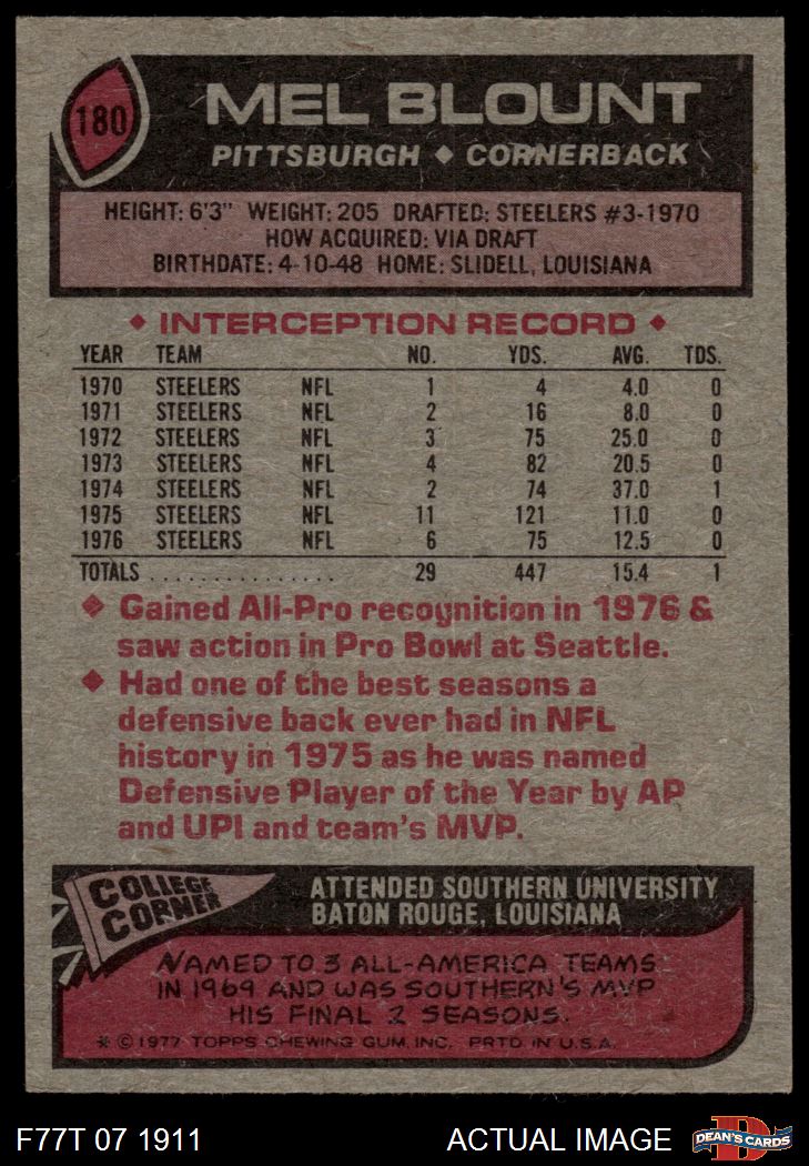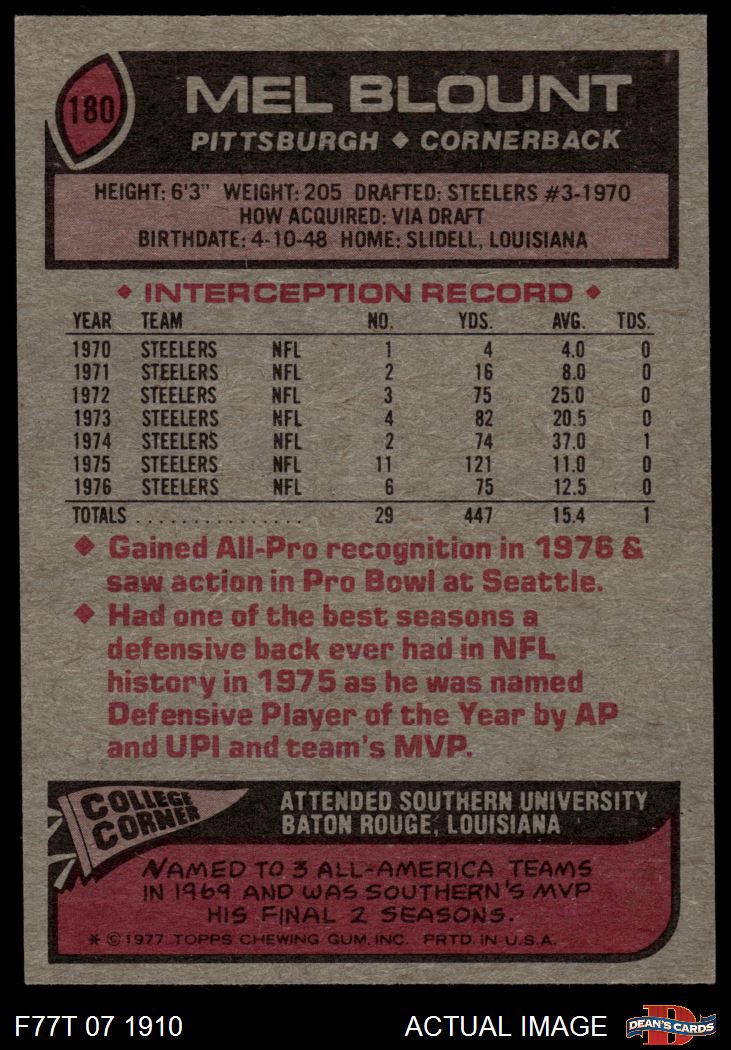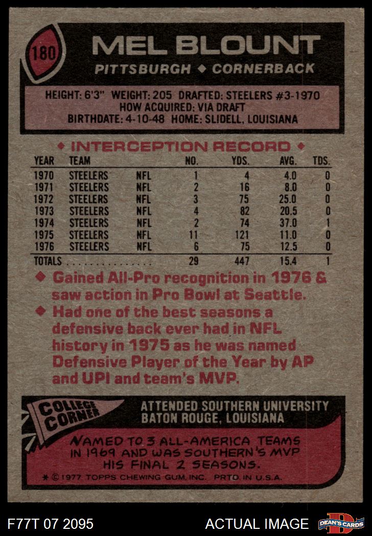 1977 Topps #180 Mel Blount 5 - EX