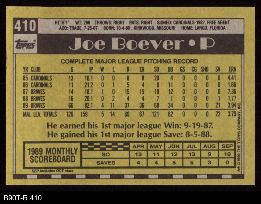 1990 Topps #410 Joe Boever 8 - NM/MT