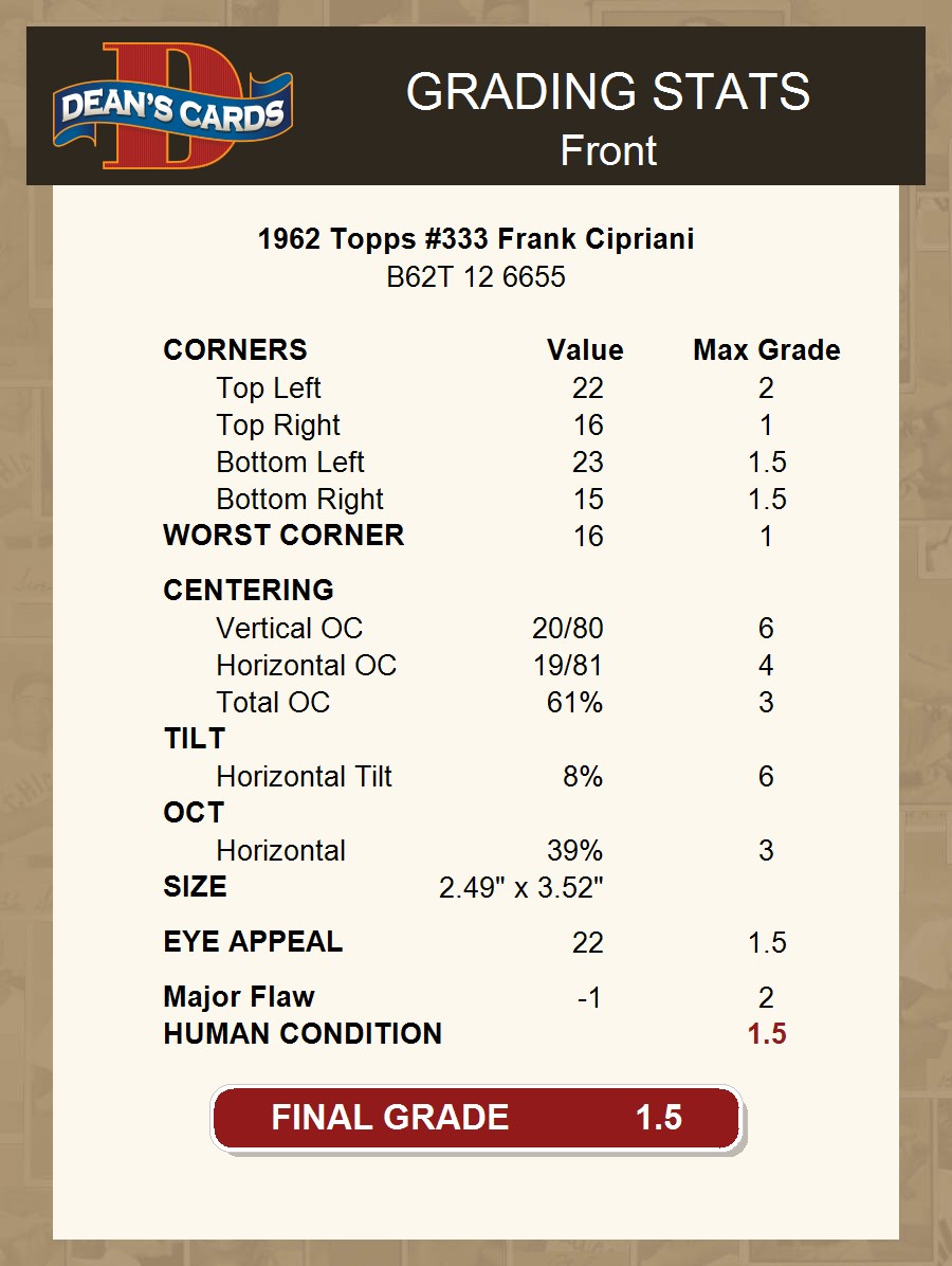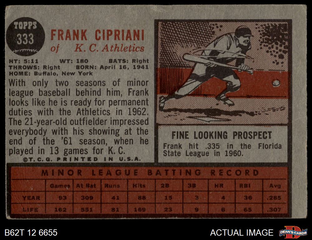 1962 Topps #333 Frank Cipriani 1.5 - FAIR