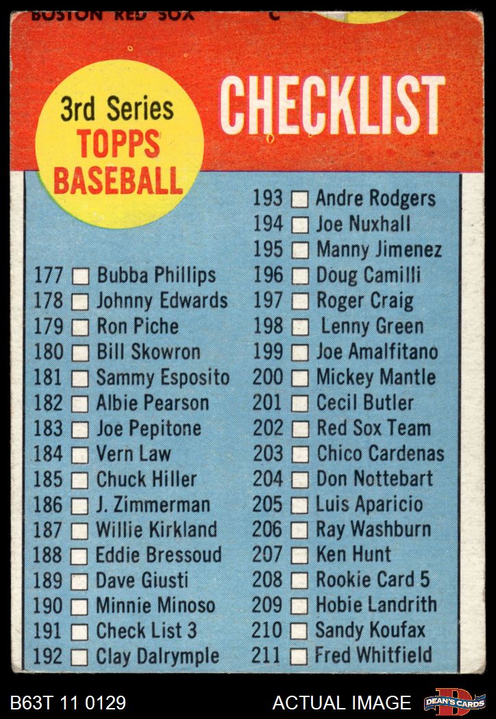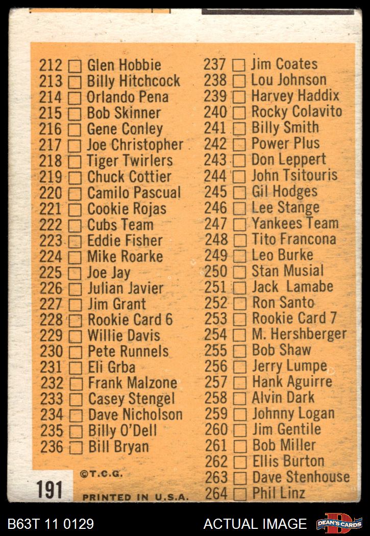 1963 Topps #191  Checklist 3 Front Thumbnail