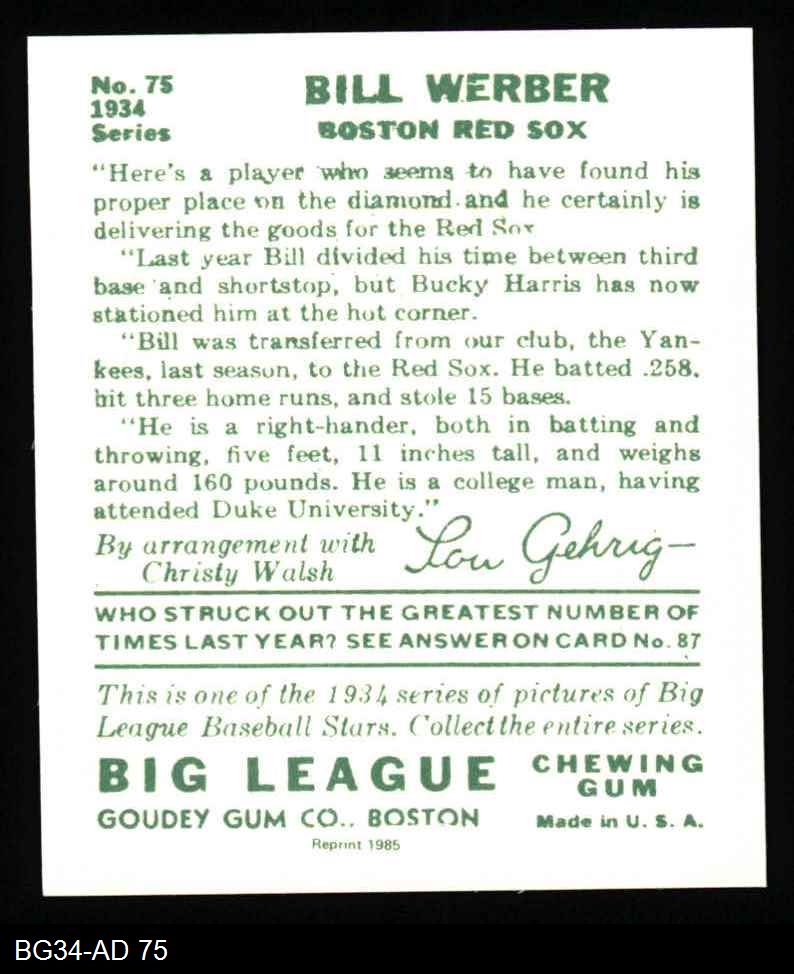 1934 Goudey Reprint (492 available)1934 Goudey Reprint Red Sox (23 available)