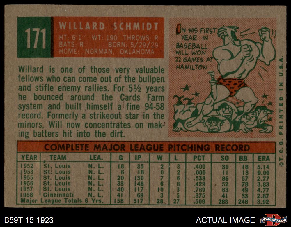 1959 Topps #171 Willard Schmidt 5.5 - EX+