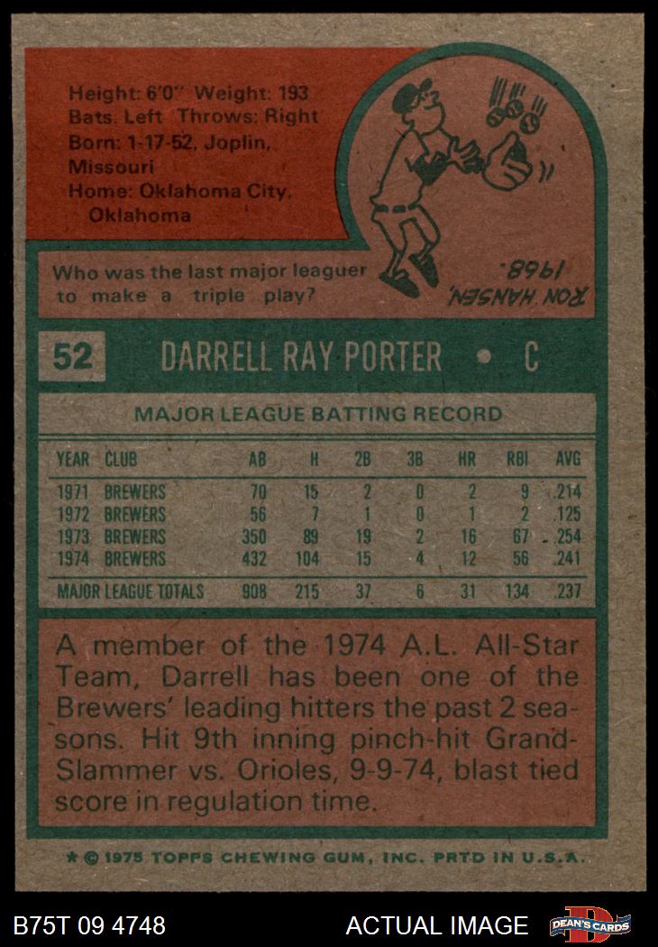 1975 Topps #52 Darrell Porter 3.5 - VG+
