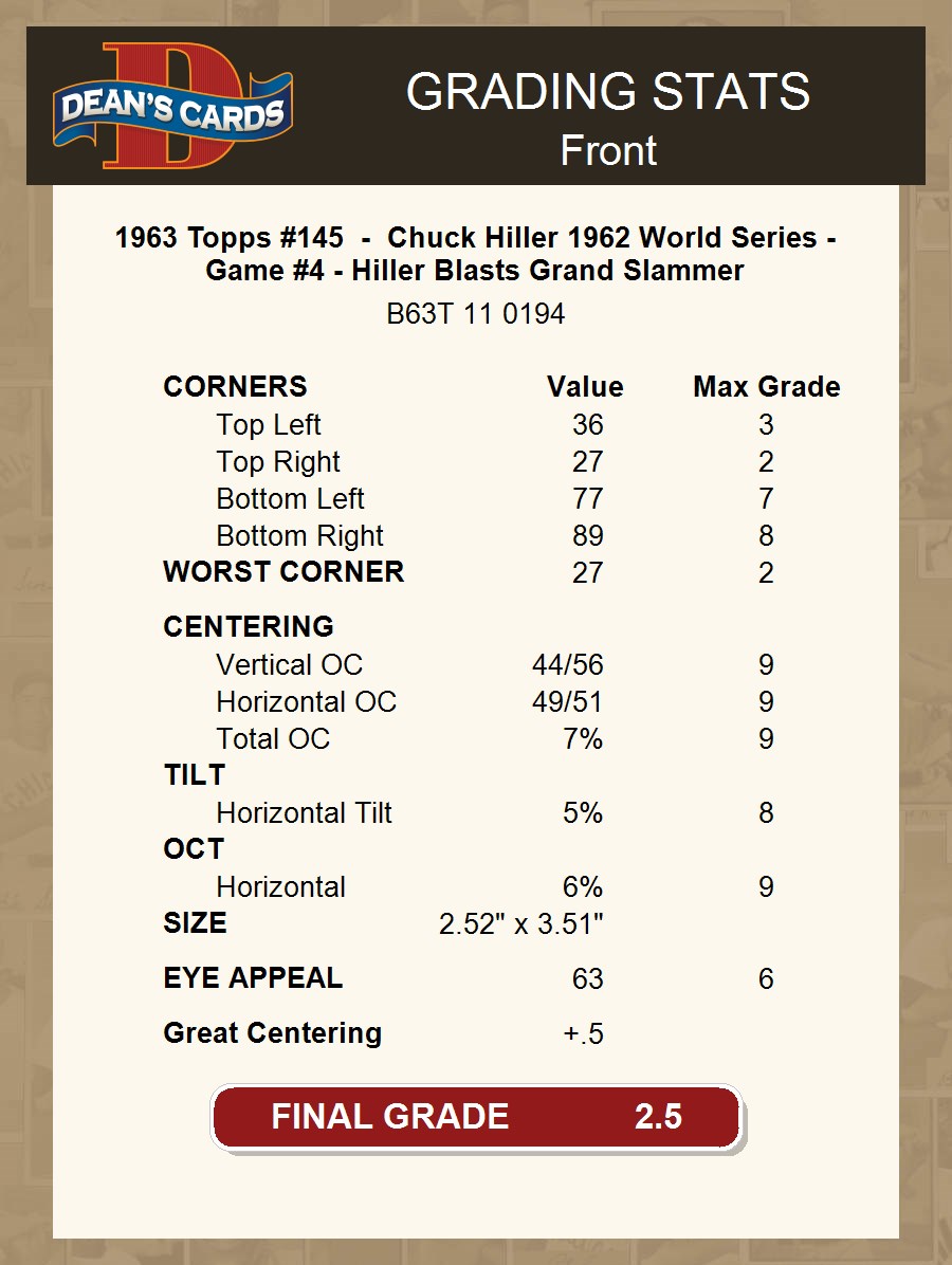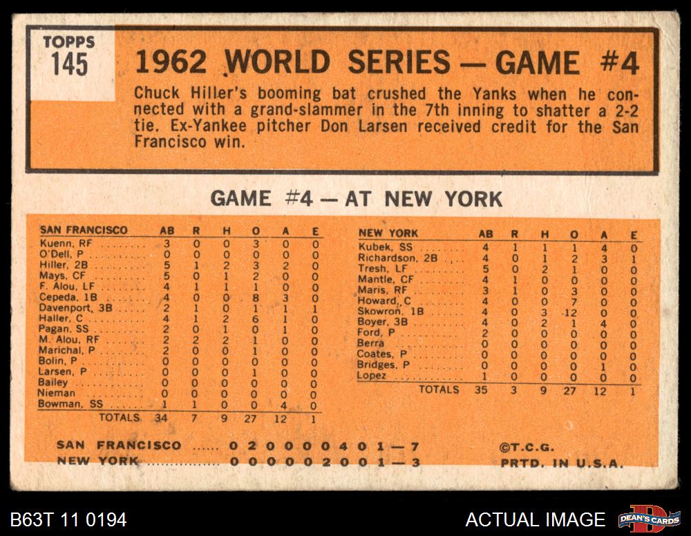 1963 Topps #145 - Chuck Hiller 1962 World Series - Game #4 - Hiller Blasts Grand Slammer 2.5 - GD+