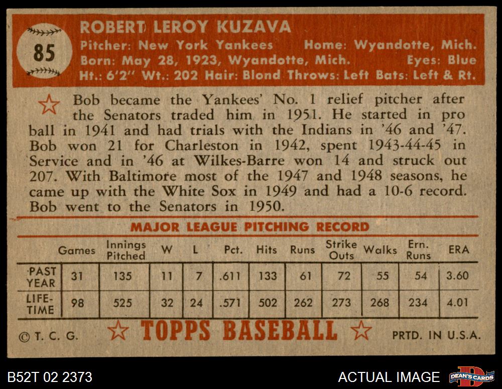 1952 Topps #85 Bob Kuzava 6 - EX/MT