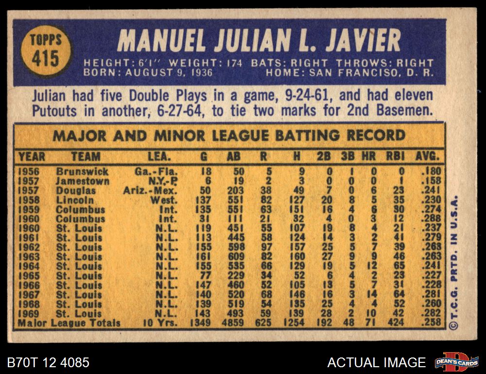 1970 Topps #415 Julian Javier 6 - EX/MT
