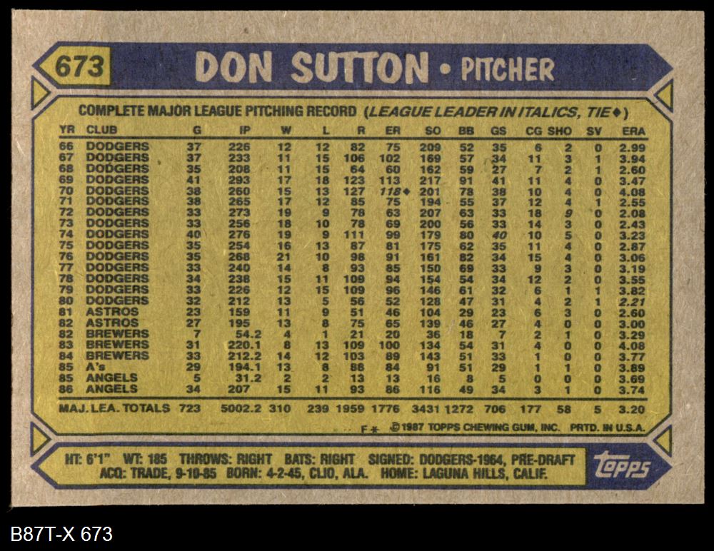 1987 Topps #673 Don Sutton