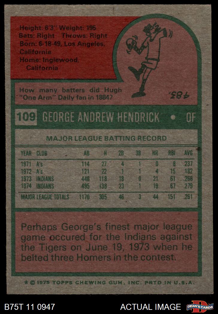 1975 Topps #109 George Hendrick 5.5 - EX+