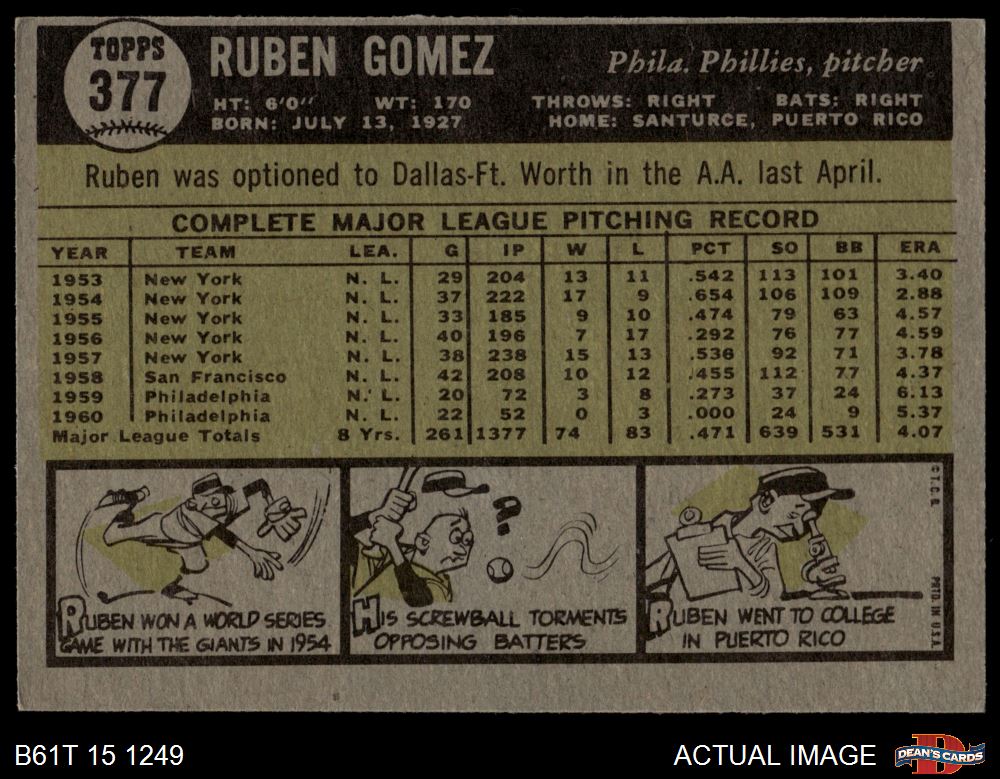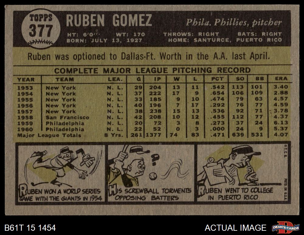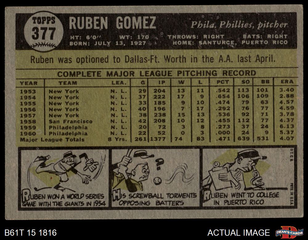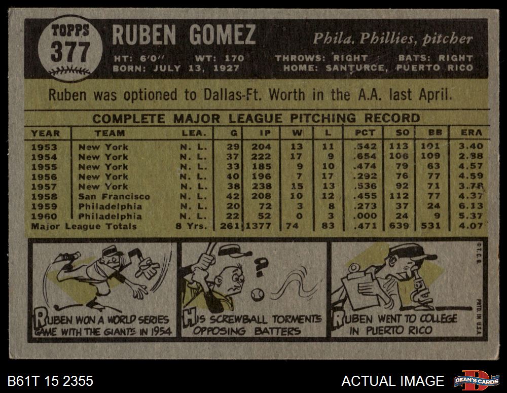 1961 Topps #377 Ruben Gomez 4 - VG/EX