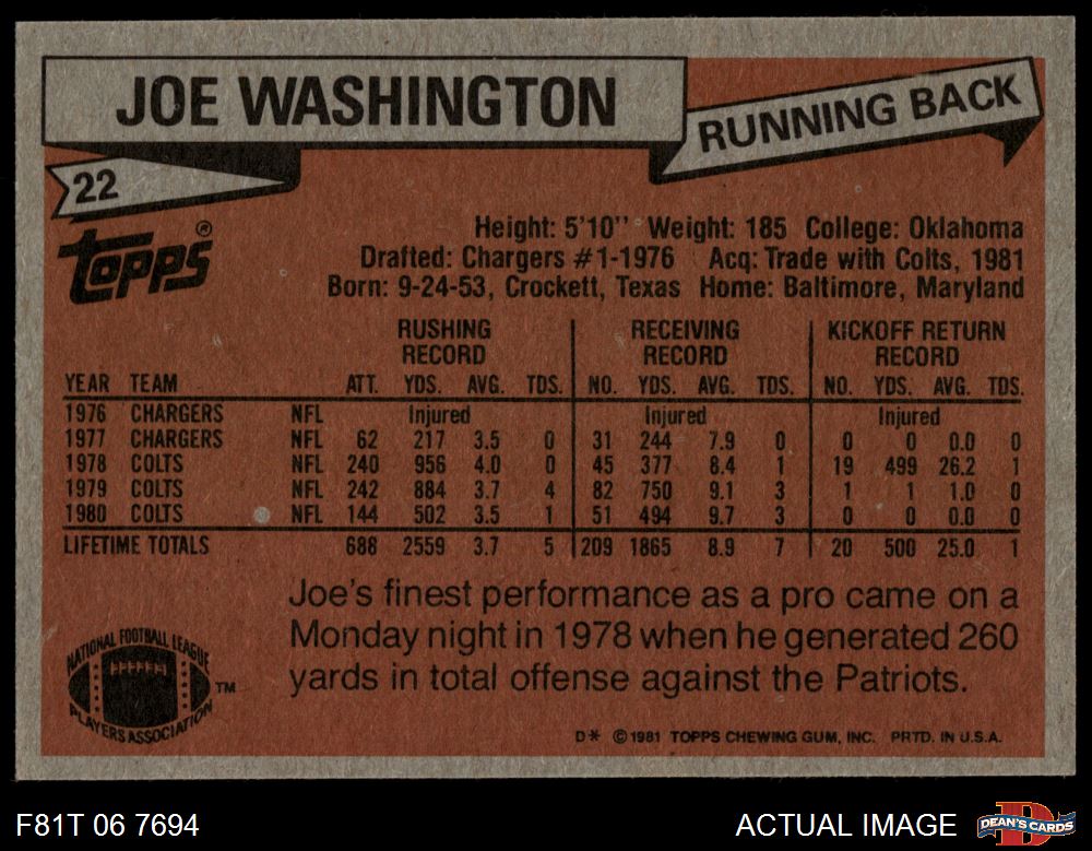 1981 Topps #22 Joe Washington 6.5 - EX/MT+
