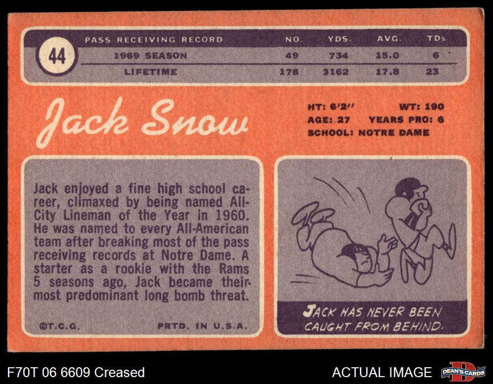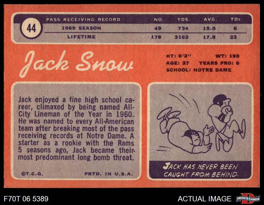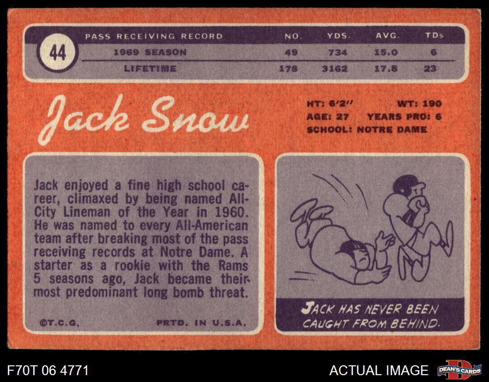 1970 Topps #44 Jack Snow 3 - VG