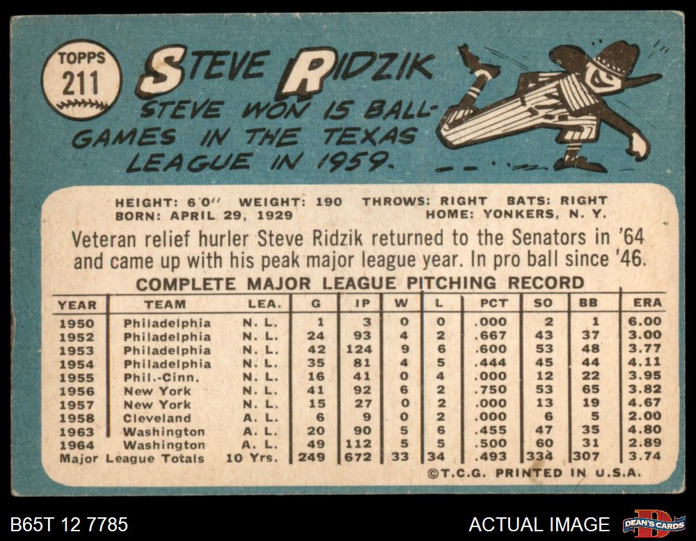 1965 Topps #211 Steve Ridzik 2 - GOOD