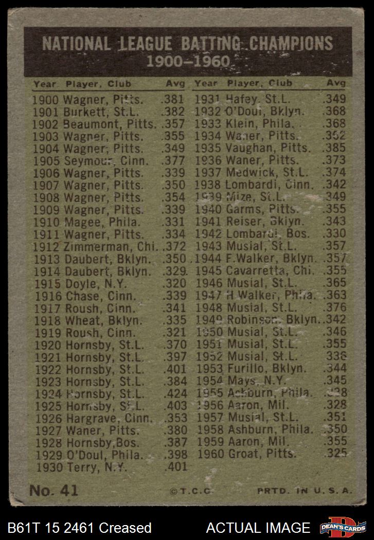 1961 Topps #41 NL Batting Leaders