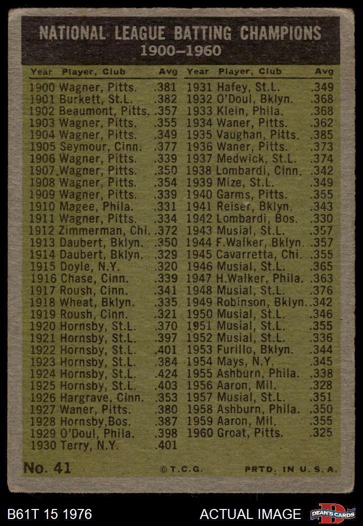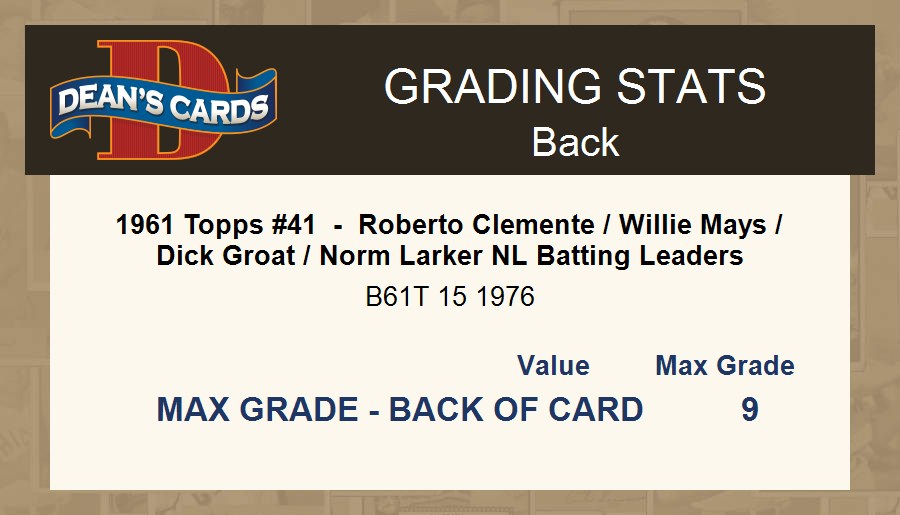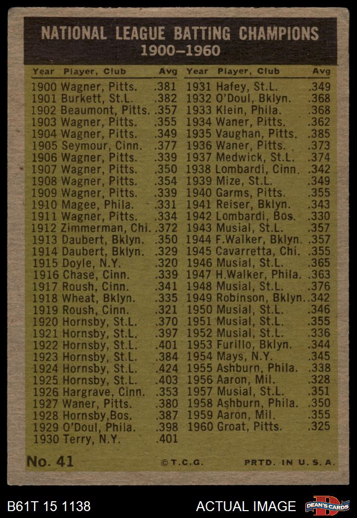 1961 Topps #41 - Roberto Clemente / Willie Mays / Dick Groat / Norm Larker NL Batting Leaders 2 - GOOD