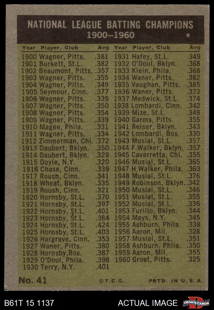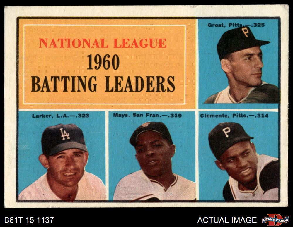 1961 Topps #41 - Roberto Clemente / Willie Mays / Dick Groat / Norm Larker NL Batting Leaders 3 - VG