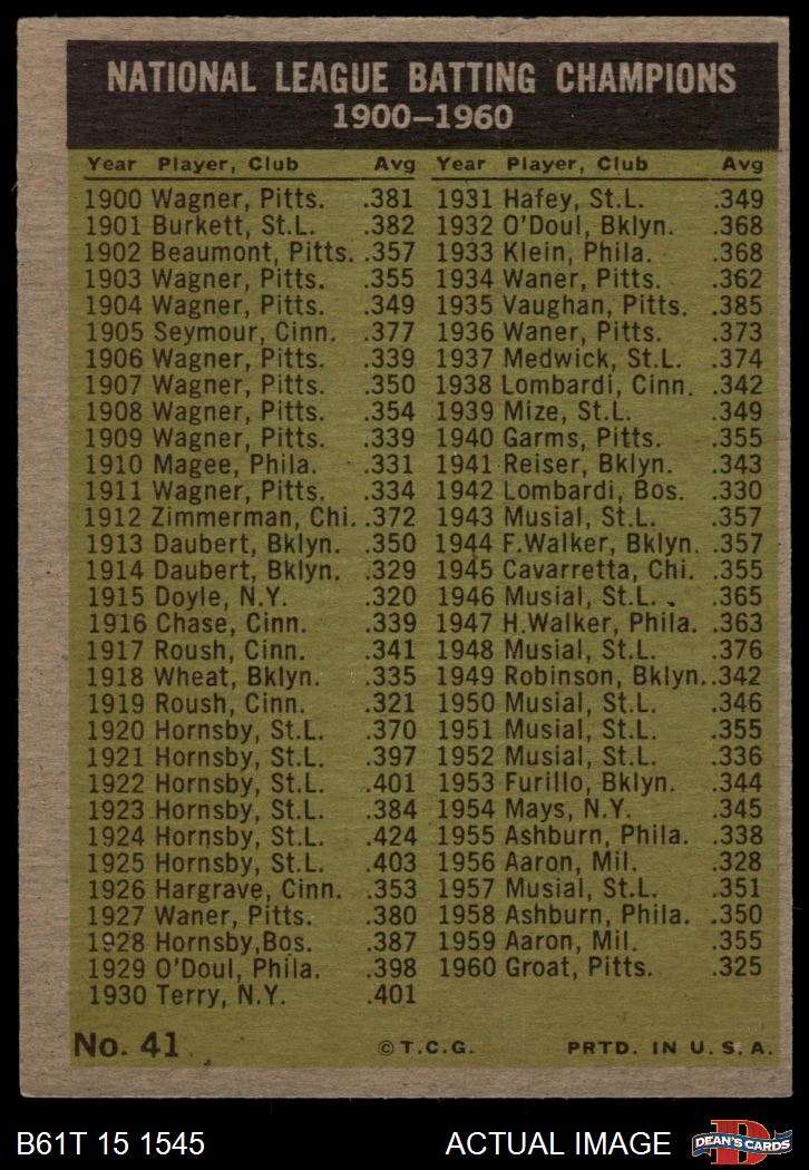 1961 Topps #41 - Roberto Clemente / Willie Mays / Dick Groat / Norm Larker NL Batting Leaders 4 - VG/EX