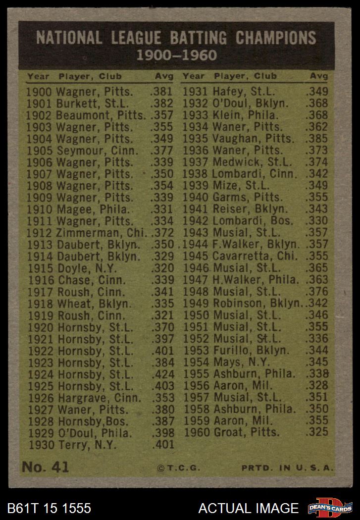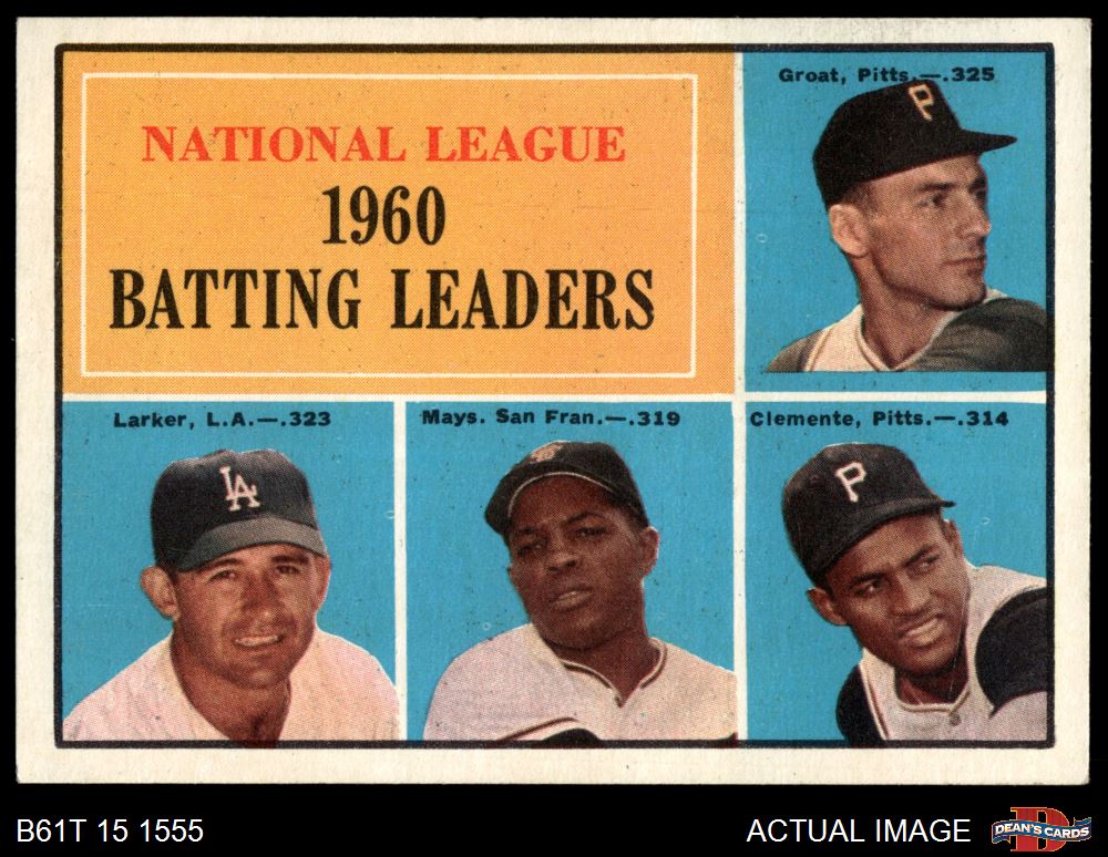 1961 Topps #41 - Roberto Clemente / Willie Mays / Dick Groat / Norm Larker NL Batting Leaders 6.5 - EX/MT+