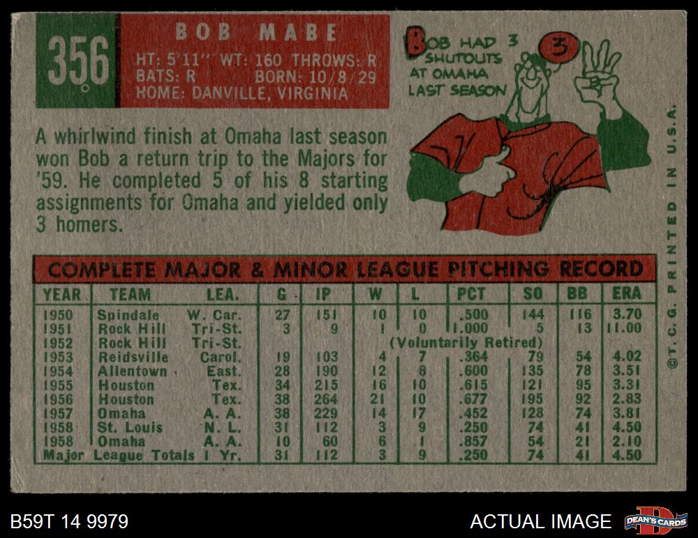 1959 Topps #356 Bob Mabe 4 - VG/EX