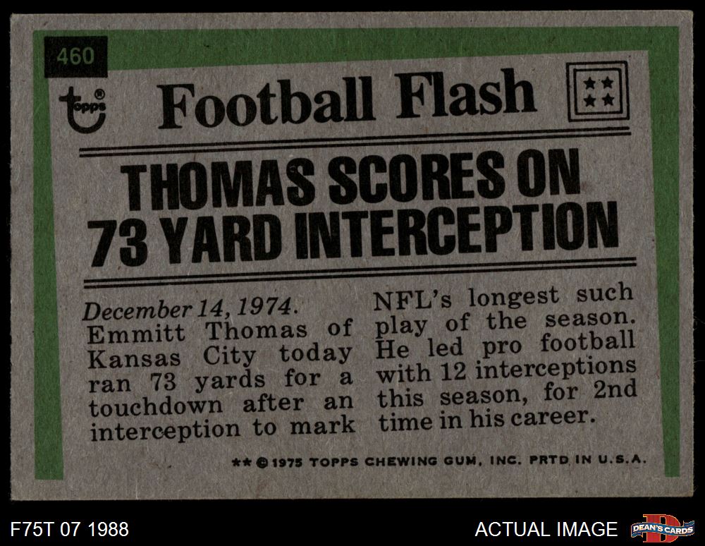 1975 Topps #460 - Emmitt Thomas Highlights 5 - EX