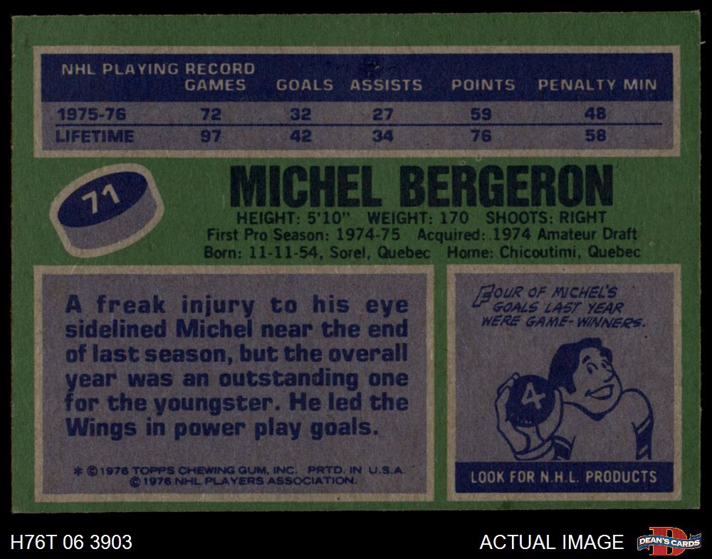 1976 Topps #71 Michel Bergeron 3 - VG