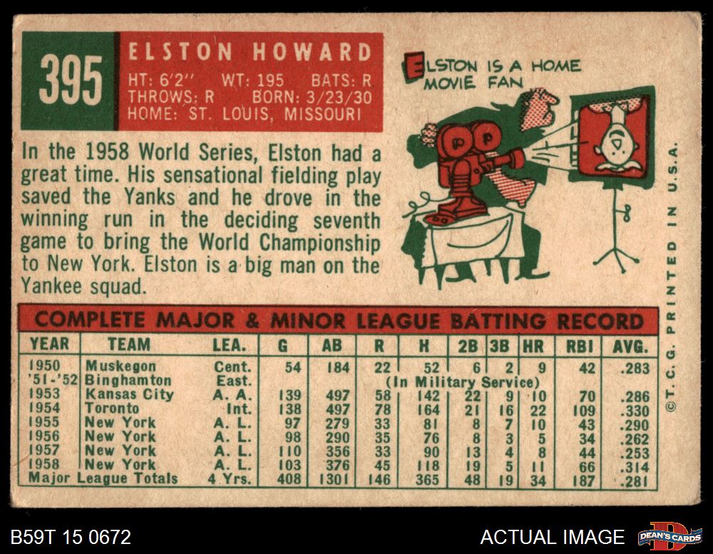1959 Topps #395 Elston Howard 3 - VG
