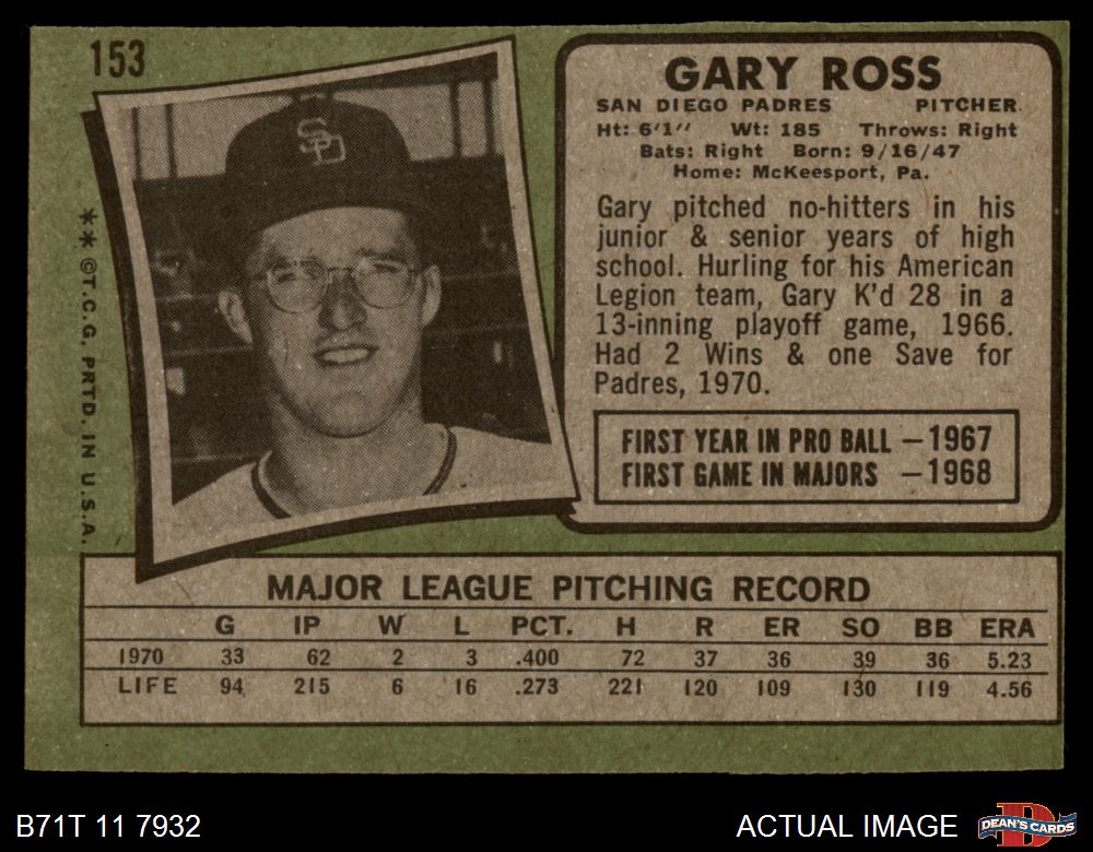 1971 Topps #153 Gary Ross 4 - VG/EX