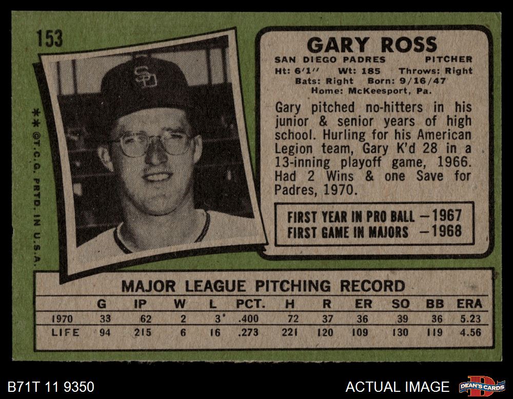 1971 Topps #153 Gary Ross 5 - EX