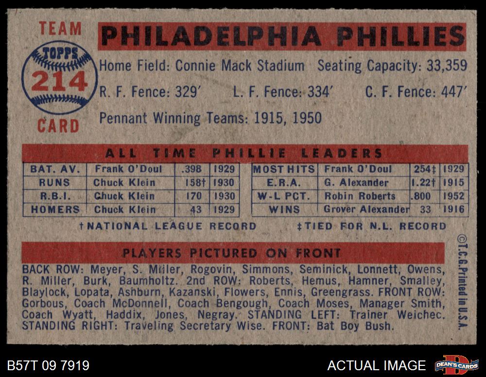 1957 Topps #214 Phillies Team 7.5 - NM+