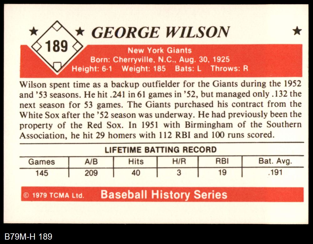 1979 TCMA The 1950's #189 George Wilson 8 - NM/MT