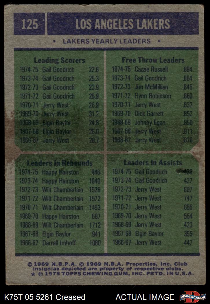 1975 Topps #125 - Gail Goodrich / Cazzie Russell / Happy Hairston Lakers Leaders 2.5 - GD+