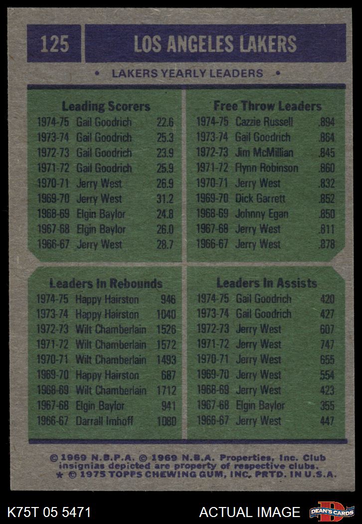 1975 Topps #125 - Gail Goodrich / Cazzie Russell / Happy Hairston Lakers Leaders 7 - NM
