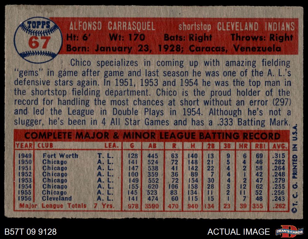 1957 Topps #67 Chico Carrasquel