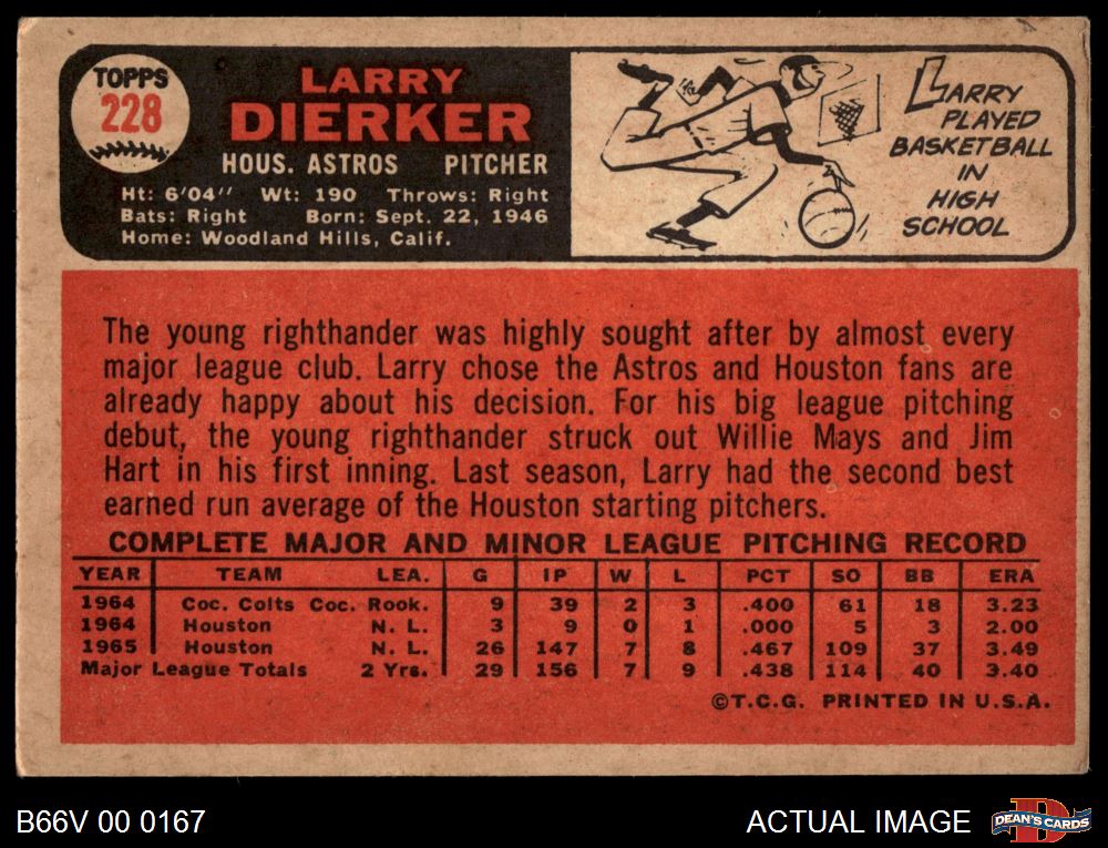 1966 Topps Venezuelan #228 Larry Dierker 5 - EX